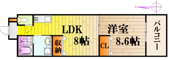 | 築年月 | 2001年2月 | 間取り | 1LDK( 洋室8.6畳/LDK8畳 ) | 専有面積 | 35m2 |