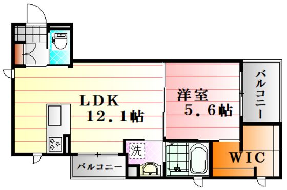 | 築年月 | 2016年2月 | 間取り | 1LDK( LDK12.1畳/洋室5.6畳 ) | 専有面積 | 44.01m2 |
