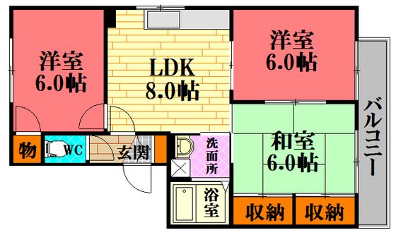 | 築年月 | 1998年3月 | 間取り | 3DK( DK8畳/洋室6畳/洋室6畳/和室6畳 ) | 専有面積 | 56.11m2 |