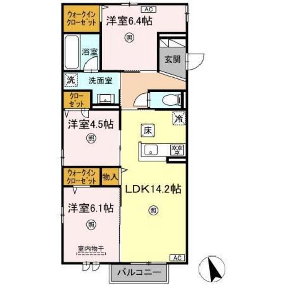 | 築年月 | 新築 | 間取り | 3LDK( LDK14.2畳/洋室6.4畳/洋室6.1畳/洋室4.5畳 ) | 専有面積 | 73.76m2 |