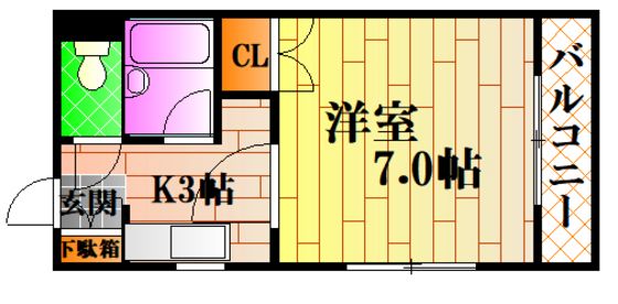 | 築年月 | 1990年3月 | 間取り | 1K( 洋室7畳/K3畳 ) | 専有面積 | 21.8m2 |