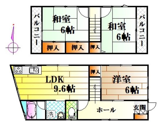 | 築年月 | 1973年10月 | 間取り | 3LDK( LDK9.6畳/洋室6畳/和室6畳/和室6畳 ) | 専有面積 | 68.95m2 |