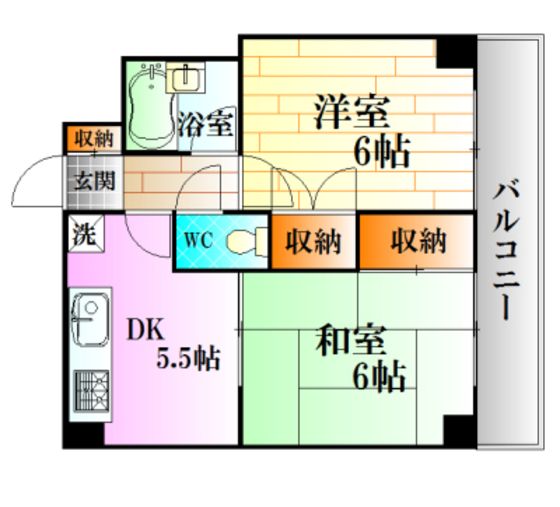 | 築年月 | 1986年3月 | 間取り | 2DK( DK5.5畳/和室6畳/洋室6畳 ) | 専有面積 | 42.1m2 |