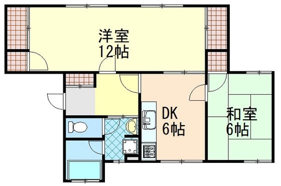 | 築年月 | 1985年6月 | 間取り | 2DK( DK6畳/和室6畳/洋室12畳 ) | 専有面積 | 54m2 |
