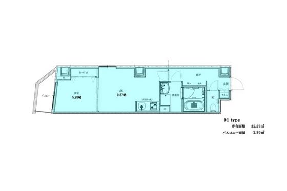 | 築年月 | 2017年3月 | 間取り | 1LDK( LDK9畳/洋室5畳 ) | 専有面積 | 35.57m2 |