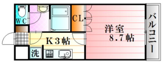| 築年月 | 2009年7月 | 間取り | 1K( K3畳/洋室8.7畳 ) | 専有面積 | 29.75m2 |