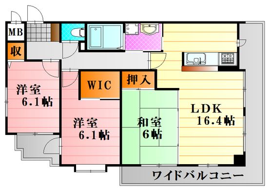 | 築年月 | 2006年5月 | 間取り | 3LDK( LDK16.4畳/洋室6.1畳/洋室6.1畳/和室6畳 ) | 専有面積 | 76.2m2 |