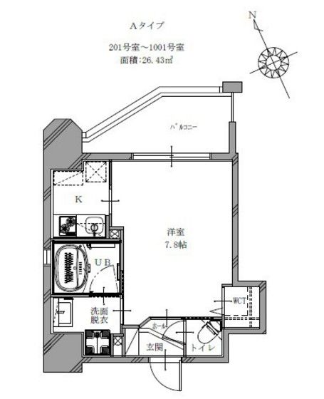 | 築年月 | 2023年2月 | 間取り | 1K( K2畳/洋室8.5畳 ) | 専有面積 | 26.43m2 |