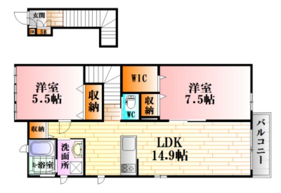 | 築年月 | 2014年9月 | 間取り | 2LDK( LDK14.9畳/洋室7.5畳/洋室5.5畳 ) | 専有面積 | 70.98m2 |