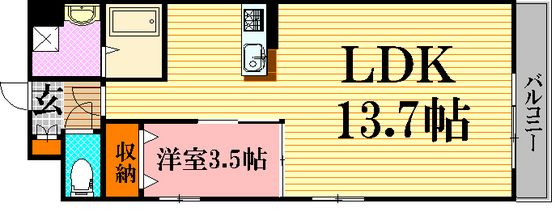 | 築年月 | 2008年2月 | 間取り | 1LDK( LDK13.7畳/洋室3.5畳 ) | 専有面積 | 42.88m2 |