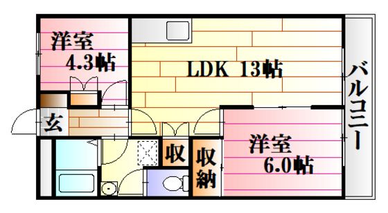 | 築年月 | 1995年6月 | 間取り | 2LDK( LDK12.4畳/洋室6畳/洋室4.3畳 ) | 専有面積 | 51.87m2 |