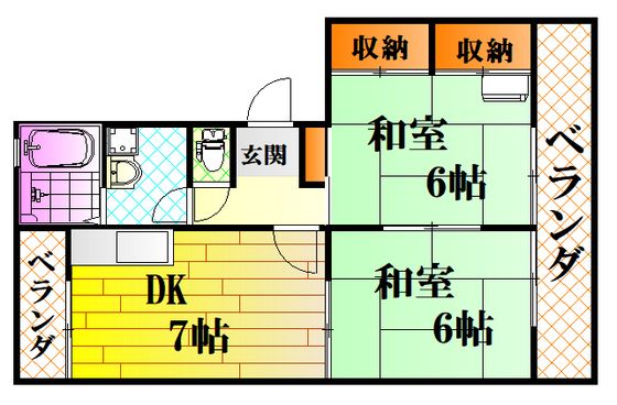 | 築年月 | 1991年5月 | 間取り | 2DK( DK7畳/和室6畳/和室6畳 ) | 専有面積 | 42m2 |