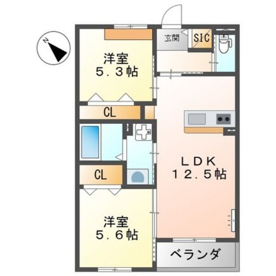 | 築年月 | 新築 | 間取り | 2LDK( LDK12.5畳/洋室5.6畳/洋室5.3畳 ) | 専有面積 | 53.48m2 |