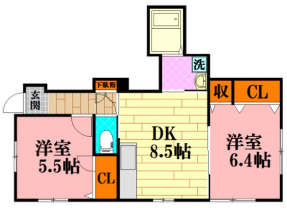 | 築年月 | 2010年1月 | 間取り | 2DK( DK8.5畳/洋室6.4畳/洋室5.5畳 ) | 専有面積 | 48.41m2 |