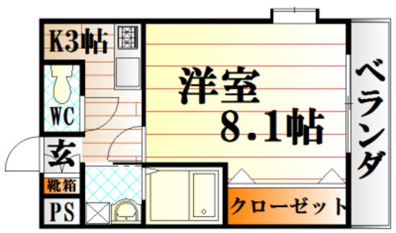 | 築年月 | 2005年2月 | 間取り | 1K( 洋室8.1畳/K3畳 ) | 専有面積 | 28.98m2 |