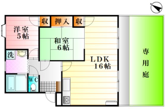 | 築年月 | 1995年3月 | 間取り | 2LDK( LDK16畳/和室6畳/洋室5畳 ) | 専有面積 | 59.33m2 |