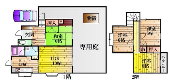 | 種別 / 構造 | 一戸建て / 木造 | 主要採光面 | 南 | 所在階 / 階数 | 1階 / 2階 |