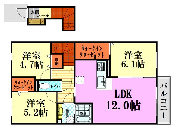 | 築年月 | 2015年12月 | 間取り | 3LDK( LDK12畳/洋室6.1畳/洋室5.8畳/洋室5畳 ) | 専有面積 | 73.53m2 |
