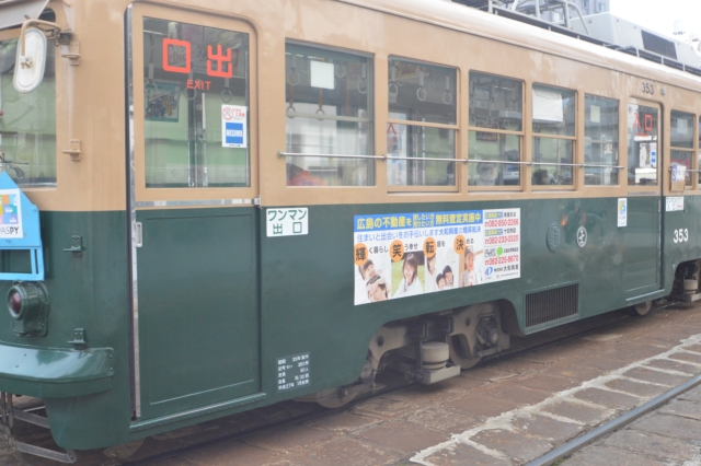 広島の象徴が駆け抜ける様子がガラス張りの室内からよく見えて