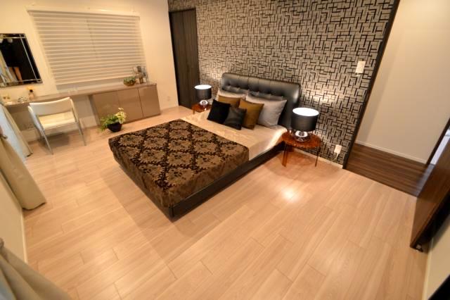 入って右側にはダブルベットを置いてもスペースが有り余る程の寝室