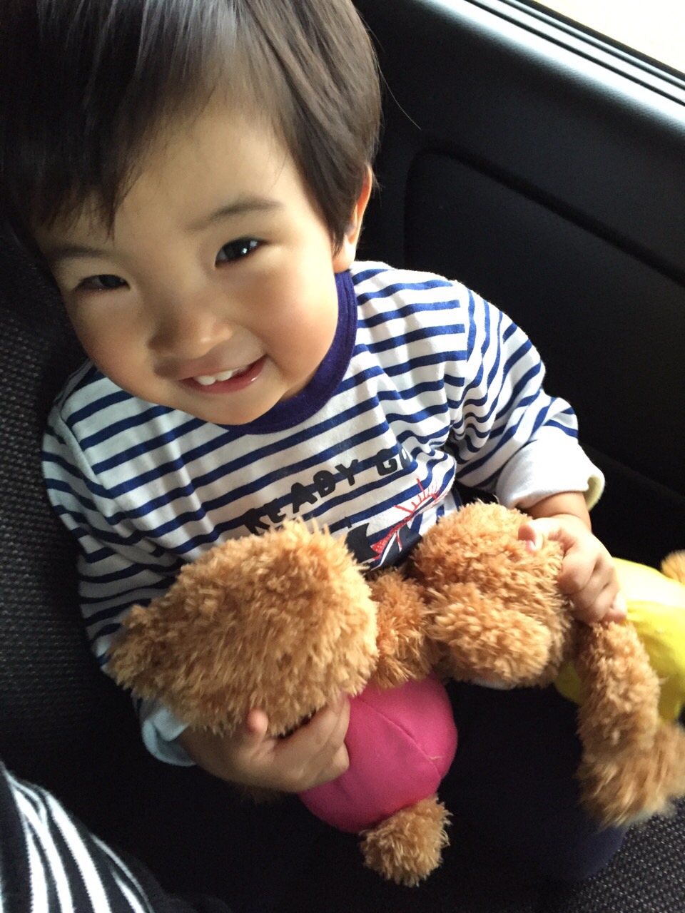 大好きな大好きな、くましゃんは後部座席へポイっ。