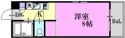 ☆バストイレ別々、洋室8帖の1Kタイプのお部屋です![]()