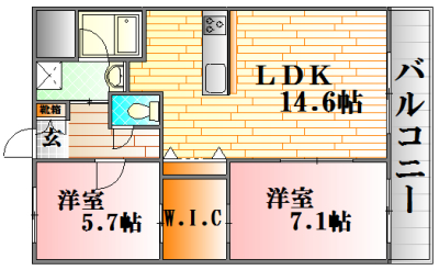 LDK14.6帖で横幅が広く家具の配置がしやすいですね