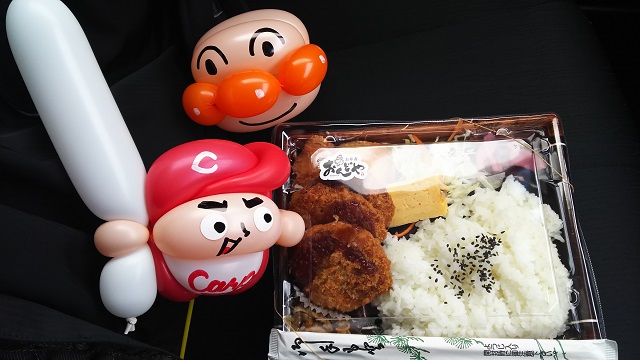 お弁当の隣に写っているのは店長手作りのバルーン人形です。