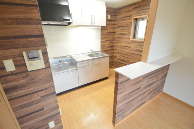 2口コンロ対応のキッチンは、お部屋によってはこのように