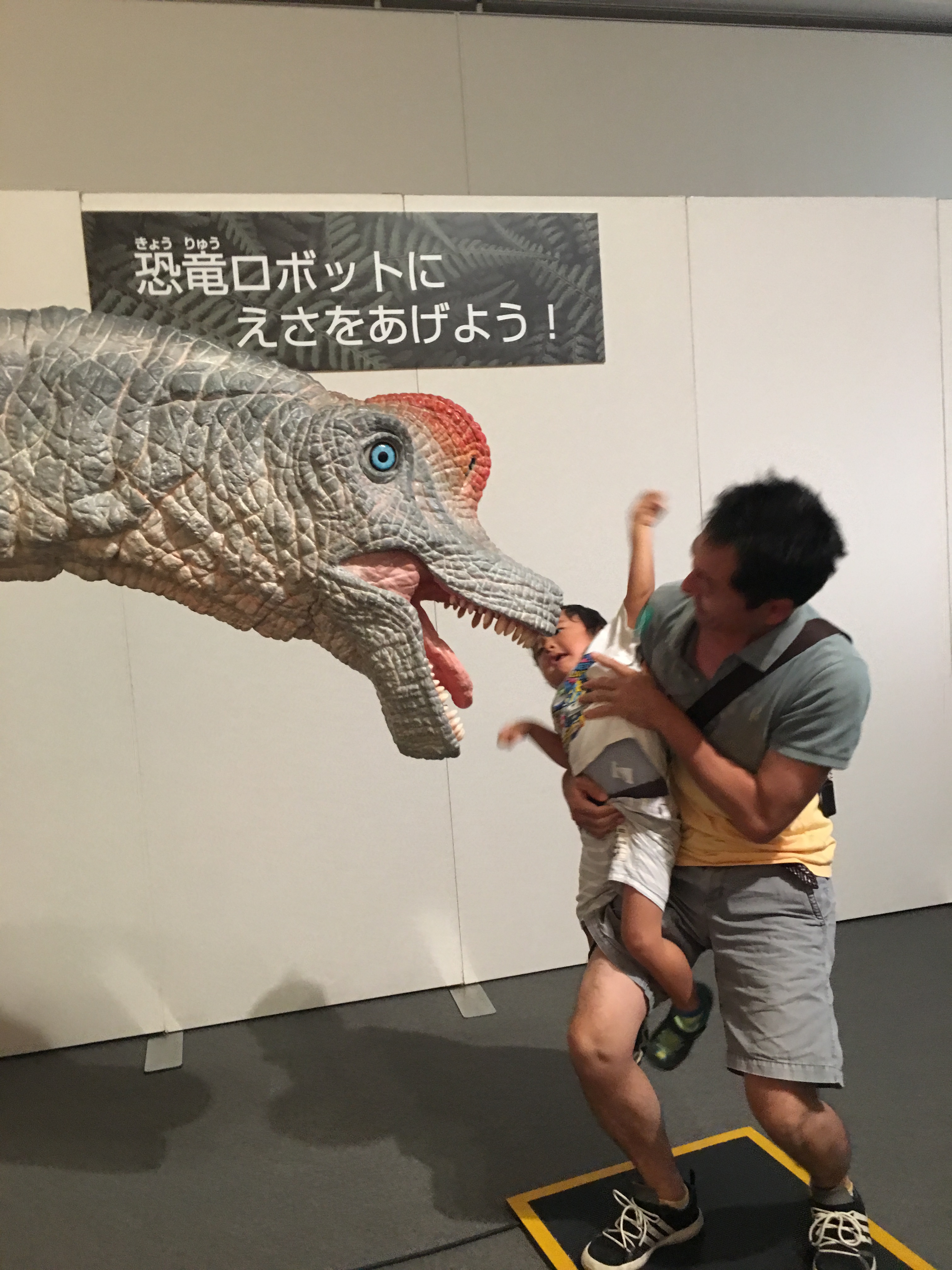 恐竜展の最後に恐竜ロボットに餌やりもできて、「やる~!!!」っといって