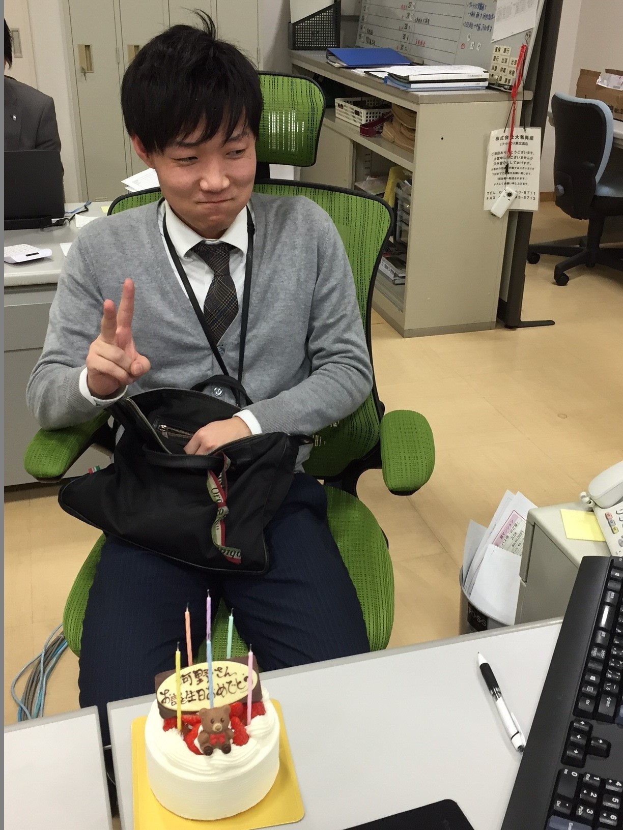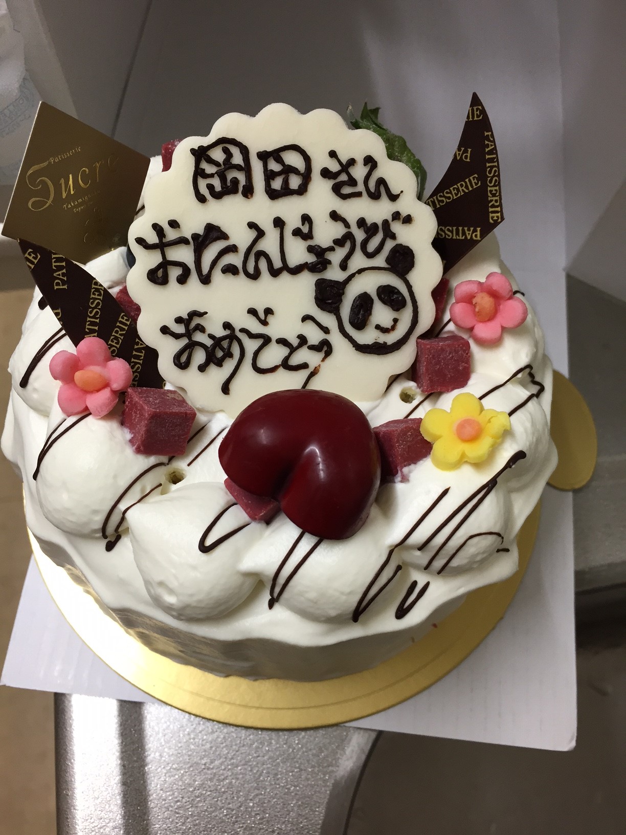 岡田社員はパンダ好きなので、パンダイラスト入りのケーキを贈りました!!