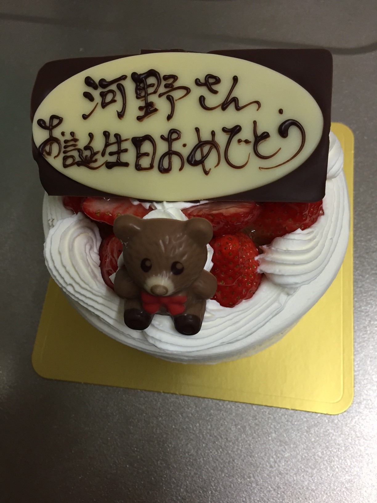 ケーキ屋さんでクマのチョコを見つけたので、クマさんのケーキを贈りました!!