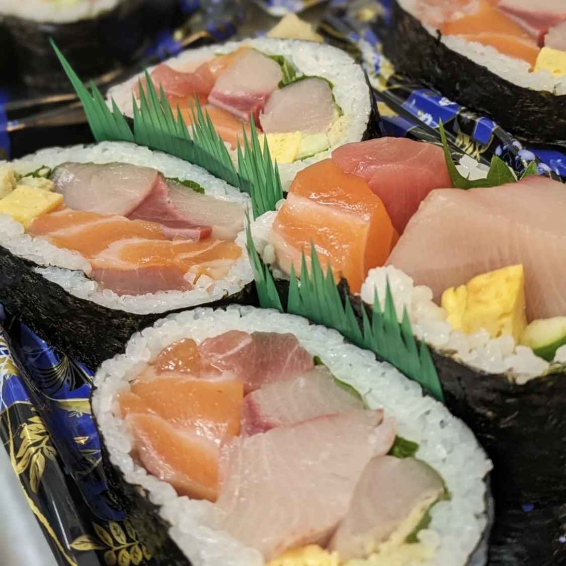 新鮮なマグロかんぱちサーモンがごろっと入ったシャリより具がたっぷりの超太めの海鮮巻。とても美味しくてあのお値段は満足度高めです![]()