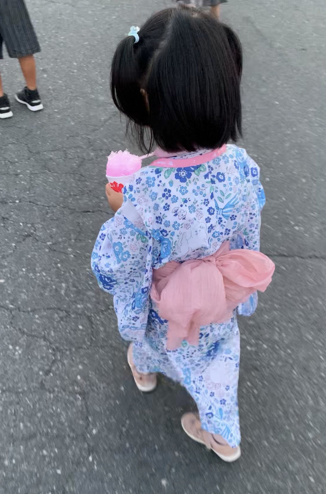子どもたちは花火大会に行くのが初めてで、なにが行われるのかよく分かっていないようでしたが、打ち上げ花火が始まると下の子は「かわいい〜」と言ってて、(何にでもかわいいと言うお歳頃笑)上の子は「爆発?」と少し驚いていましたが、目をまん丸にして見惚れていました。