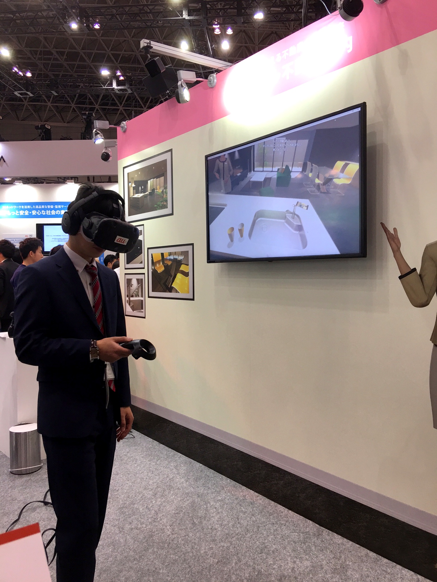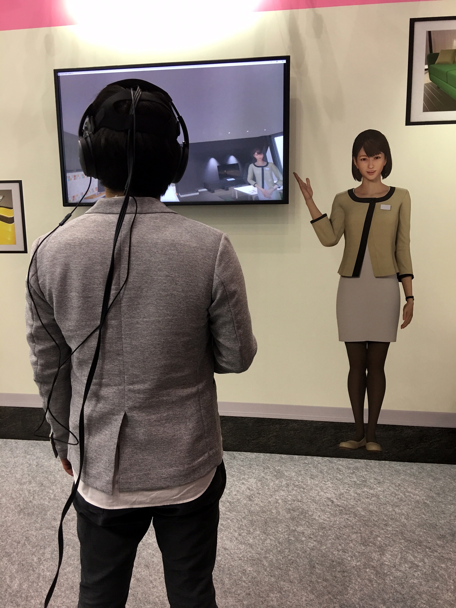 右側に見えている女性と、TVに映っている画像が
