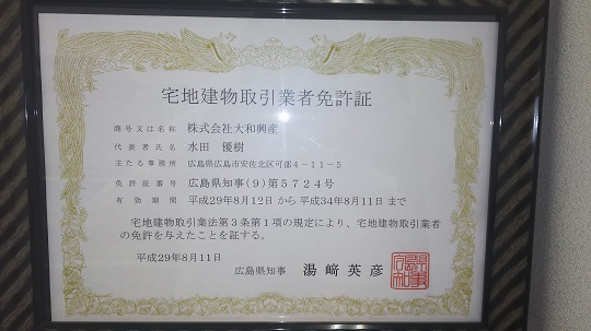 そして大和興産では今年の8月で宅地建物取引業免許が8回目の更新と