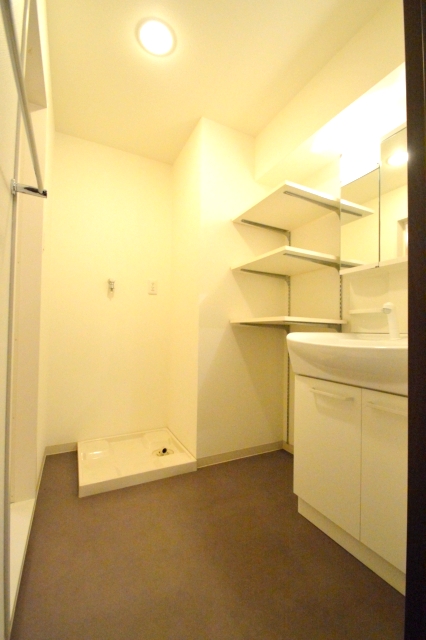 脱衣場には、棚付で段差も変更可能![]()