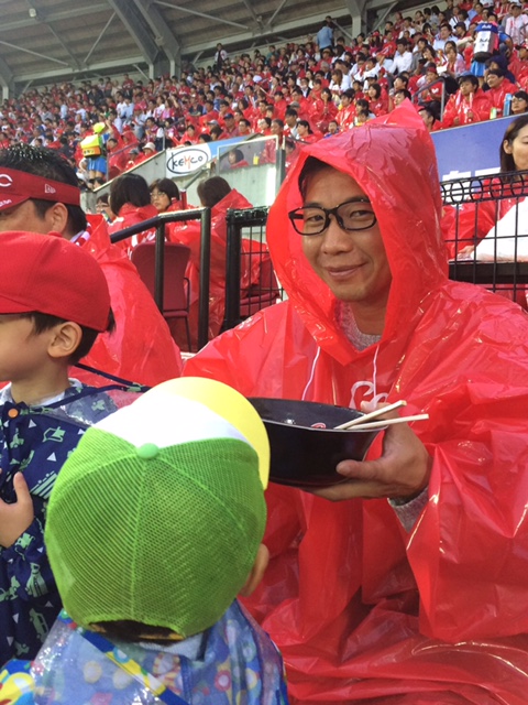 我らがカープの応援も行きました。昨年の日本シリーズに引き続き雨でしたが。