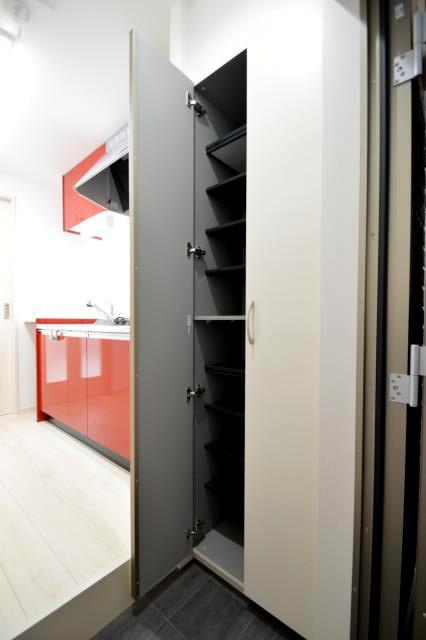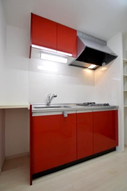 カープを応援したくなるブリリアントレッドのキッチンスペース![]()
