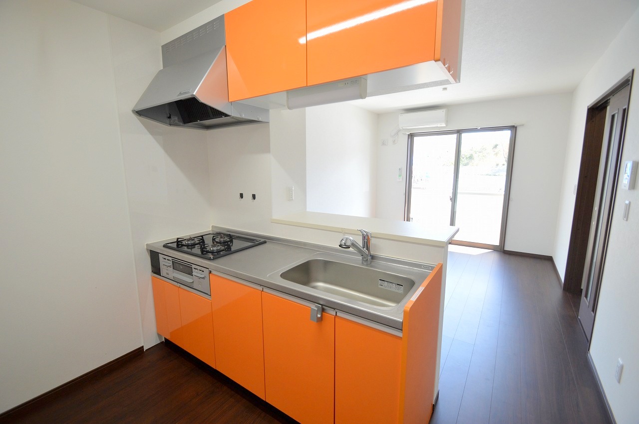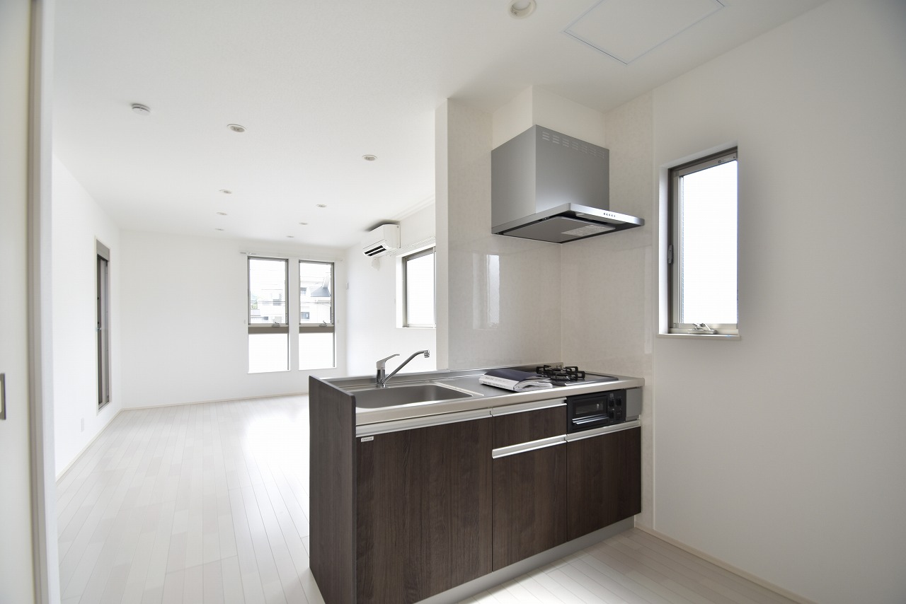 【LDK】ガス3口グリル付き、対面式カウンターキッチン