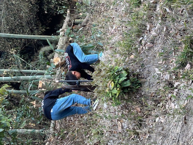 土の中から引っこ抜いた たけのこをどっちが持つかで 揉めておりました![]()