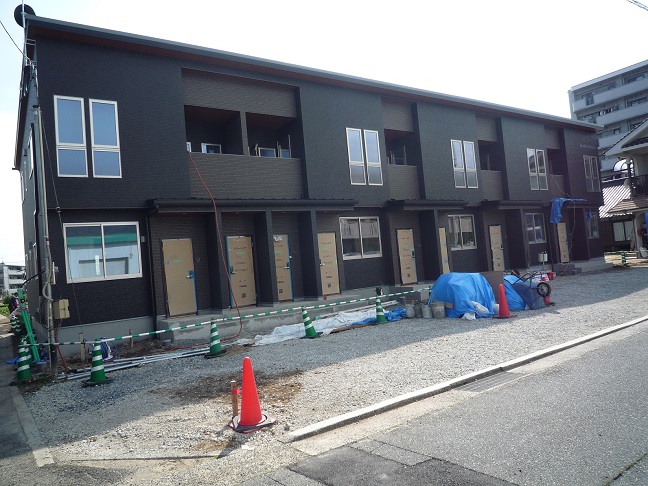 安佐南区川内にて建築中、5月完成予定のアパートです。