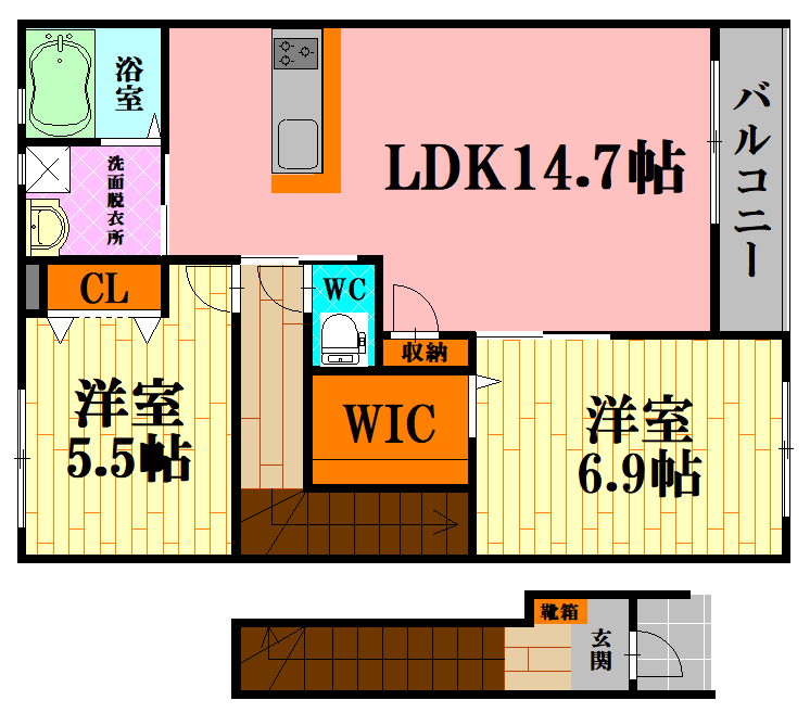 ②浴室乾燥・対面システムキッチン・ウォシュレット・2面バルコニー、トランクルームなど