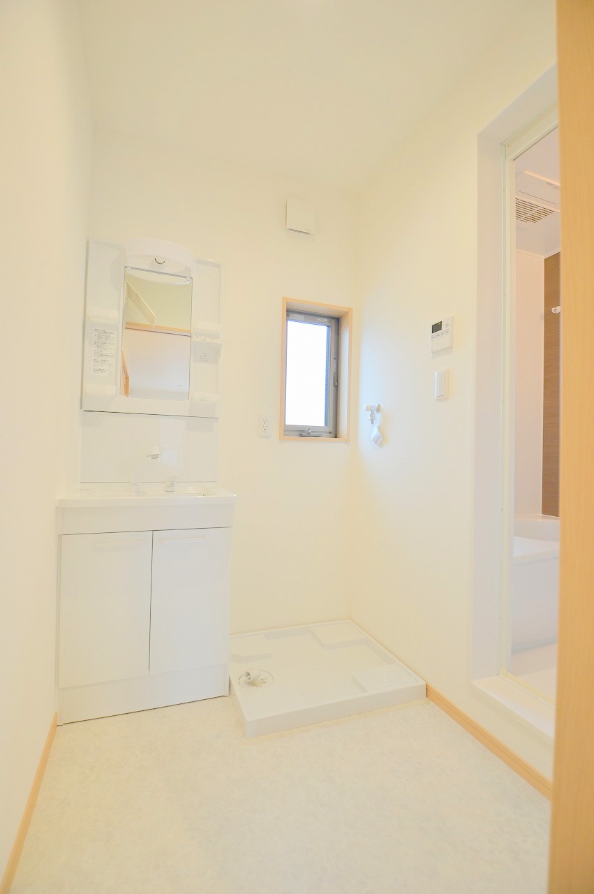 【洗面台】うれしいシャワー付独立洗面台、室内洗濯機置場あり