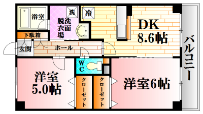 全室洋室、振り分けタイプで