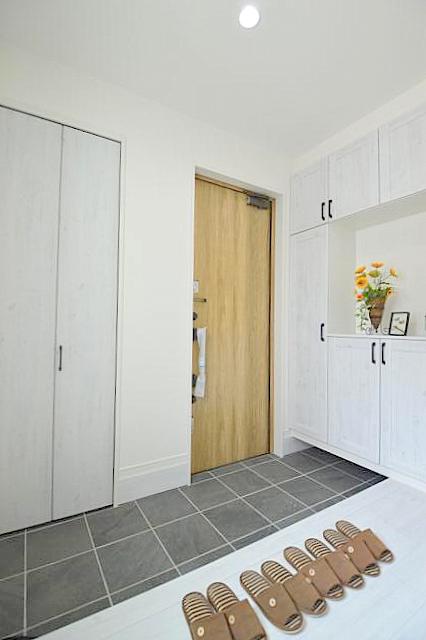 白を基調とした明るい玄関![]()