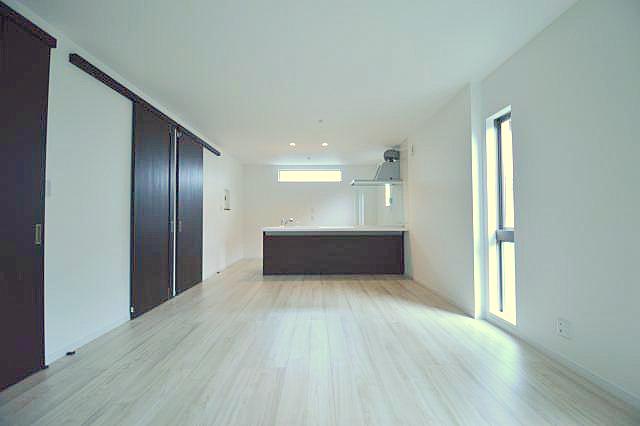 白を基調とした室内に建具・キッチンはダークブラウンで統一した