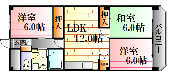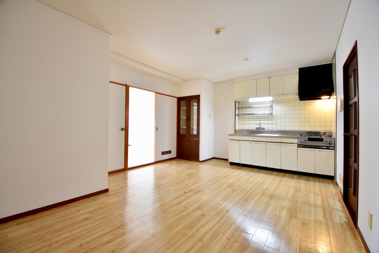 3LDKの広々とした間取りでキッチンには収納棚もあります![]()