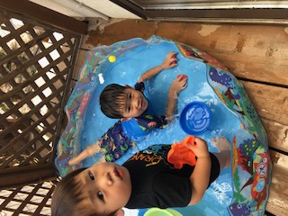 7月に入って保育園でもプールが始まったので、先日のお休みの日、我が家でも倉庫からプールを
