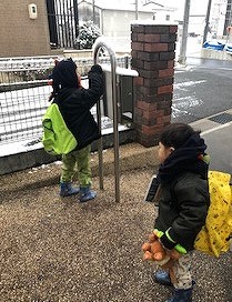 ほんのちょっとの雪でも子供たちは、うれしいようで・・朝外に出るなり、触っておりました![]()
